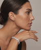 Il bracciale Icona, dal disegno deciso e raffinato, costruito su una sequenza di cuori perfettamente allineati, ciascuno incastonato con uno zircone centrale a taglio brillante e circondato da un pavé micro-incastonato. Il risultato è una luminosità continua, uniforme, che cattura la luce in modo pulito e controllato.