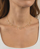 La collana Hope è caratterizzata da una linea sottile e luminosa, pensata per accompagnare il décolleté con leggerezza ed equilibrio. I piccoli pendenti distribuiti lungo la catena creano un ritmo visivo armonioso, capace di riflettere la luce con discrezione e naturalezza.